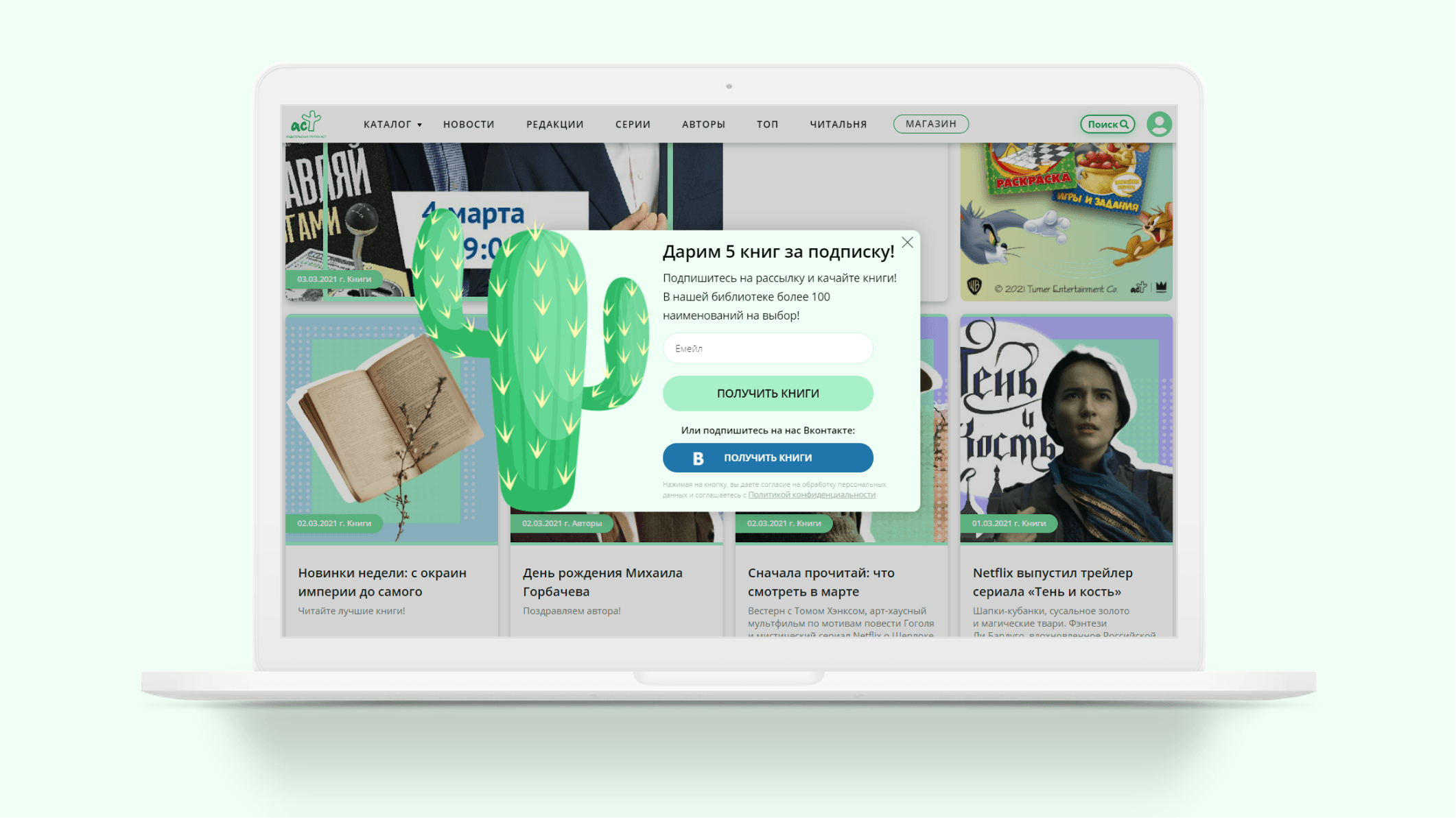 Стало понятно, что пользователи не хотят ждать, им интересно получить книгу сразу — здесь и сейчас. Тогда ACT закрыли розыгрыш и придумали новый лид-магнит — взамен на емейл каждый новый подписчик получает в подарок пять книг.
