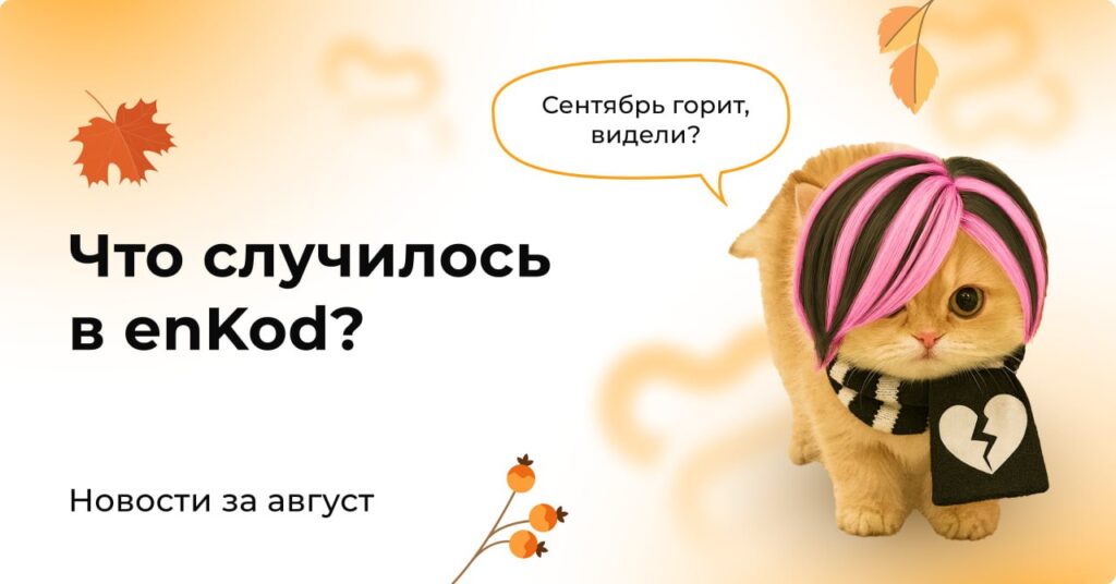 Мы в enKod любим котиков, потому что они милые и смешные. И часто в контенте используем фотографии питомцев наших сотрудников. Например, в сентябрьской рассылке с новостным дайджестом мы стилизовали котика руководителя отдела поддержки под представителя известной субкультуры, чтобы отразить ностальгию целого поколения.