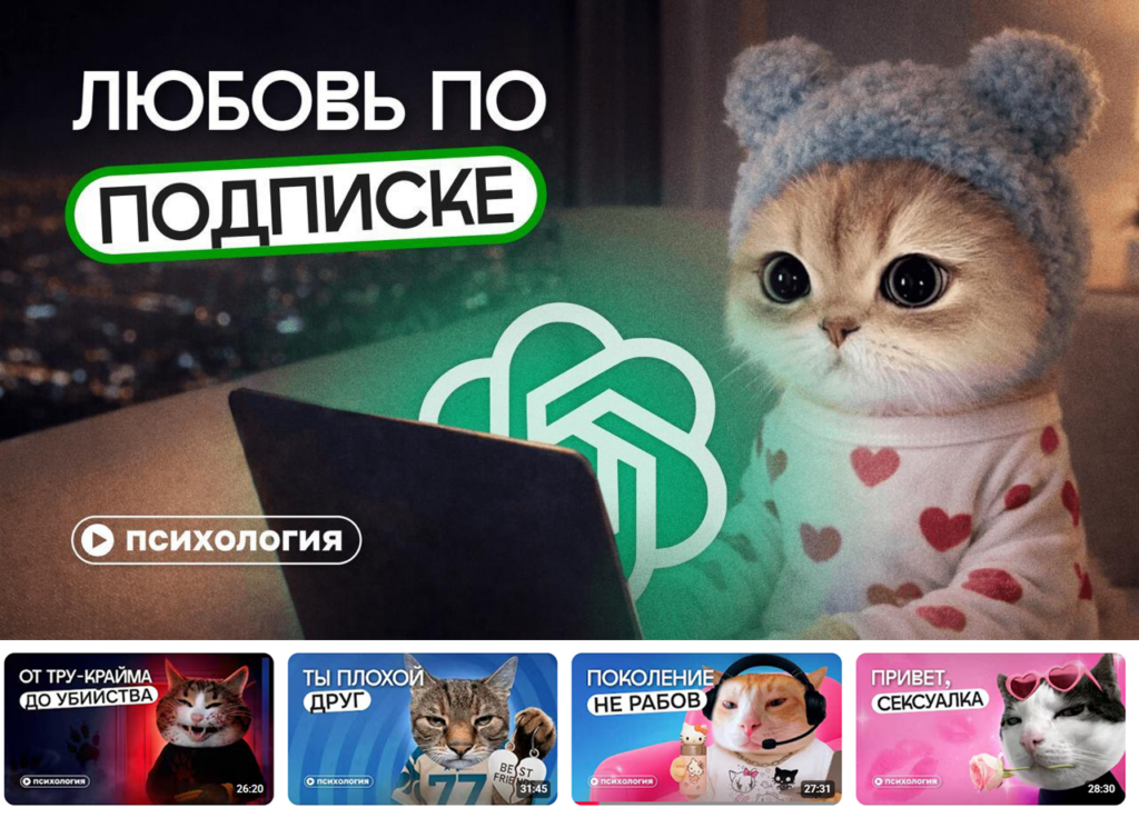 Образовательный проект «Правое полушарие Интроверта» для привлечения внимания к своим видео часто использует котиков на обложках.